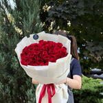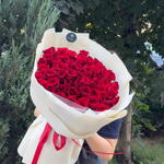 ❤️🔥“51 сердце”❤️🔥 🌹 51 красная роза в полупрозрачной матовой аква-бумаге и бежевом оформлении — как 51 горячее признание в любви, о котором она мечтает. ✨ Лента красного цвета подчёркивает страсть и глубину чувств, которые невозможно скрыть. 🔥 Этот букет – для самых важных слов и сильных эмоций. 🎈 Подойдёт для годовщины, предложения руки и сердца или чтобы просто сказать “Ты – моя”. 🚗 Доставка в день заказа. 💌 Открытка или шарик в подарок по желанию.