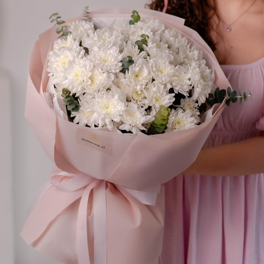 💐 Букет 364 «Нежное прикосновение» Воздушный и элегантный букет из белых кустовых хризантем, утопающих в мягкой нежно-розовой упаковке 🌸 Свежий эвкалипт добавляет лёгкий аромат и ощущение утренней прохлады 🍃 Этот букет — про заботу, тепло и искренние чувства. Идеально подойдёт для признания, дня рождения или просто «без повода» 💗 ✨ Почему его выбирают: выглядит дорого и стильно долго сохраняет свежесть универсален — подойдёт и девушке, и маме, и коллеге Нежность, которую хочется дарить 💕🌸🤍🍃🎀