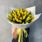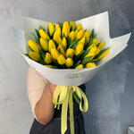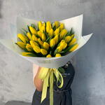 тюльпаны желтые - 35 шт. лента репсовая желтая - 1 шт. аква бумага белая - 4 шт.