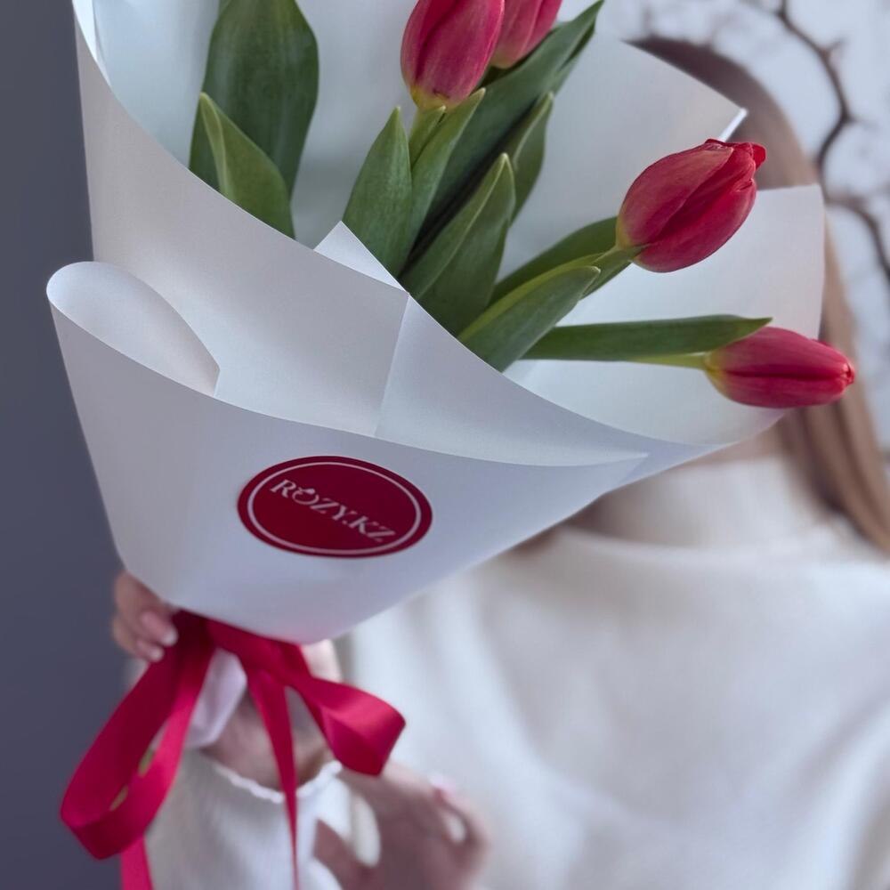 Букет 5 красных тюльпанов