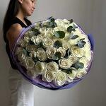 Букет из 51шт белых роз с эвкалиптом, который излучает свет и радость. Он подчеркнёт искренность ваших чувств
