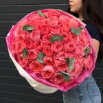 Букет "51 пионовидных роз Pink Expression с эвкалиптом"