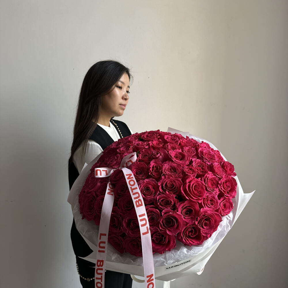 Представляем вашему вниманию эффектный монобукет из 51 розы сорта Pink Floyd. Уникальный оттенок этих цветов впечатляет своей насыщенностью и яркостью, затмевая все другие тона. Каждый бутон словно украшен невидимым тонким мерцанием, заставляя взгляд постоянно возвращаться. Этот букет станет идеальным подарком для любого торжества или просто способом сказать: Ты особенна.