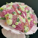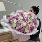 Гортензия - 10 шт. Лизиантус - 7 шт. Хризантема кустовая - 6 шт. Гвоздика - 6 шт. Хризантема одноголовая - 6 шт. Эвкалипт Цинерея - 13 шт. джульетта роза пионовидная - 7 шт. момоко - 7 шт.