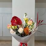 Антуриум - 1 шт. Маттиола - 2 шт. Роза - 2 шт. Эустома - 2 шт. Нутан - 1 шт. Гревиллея - 1 шт.