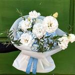 Раскидистых дуобукет из гортензии и эустомы.
