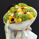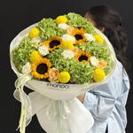 Гортензия - 6 шт. Гвоздика - 8 шт. Подсолнух - 4 шт. момоко - 7 шт. розы - 4 шт.