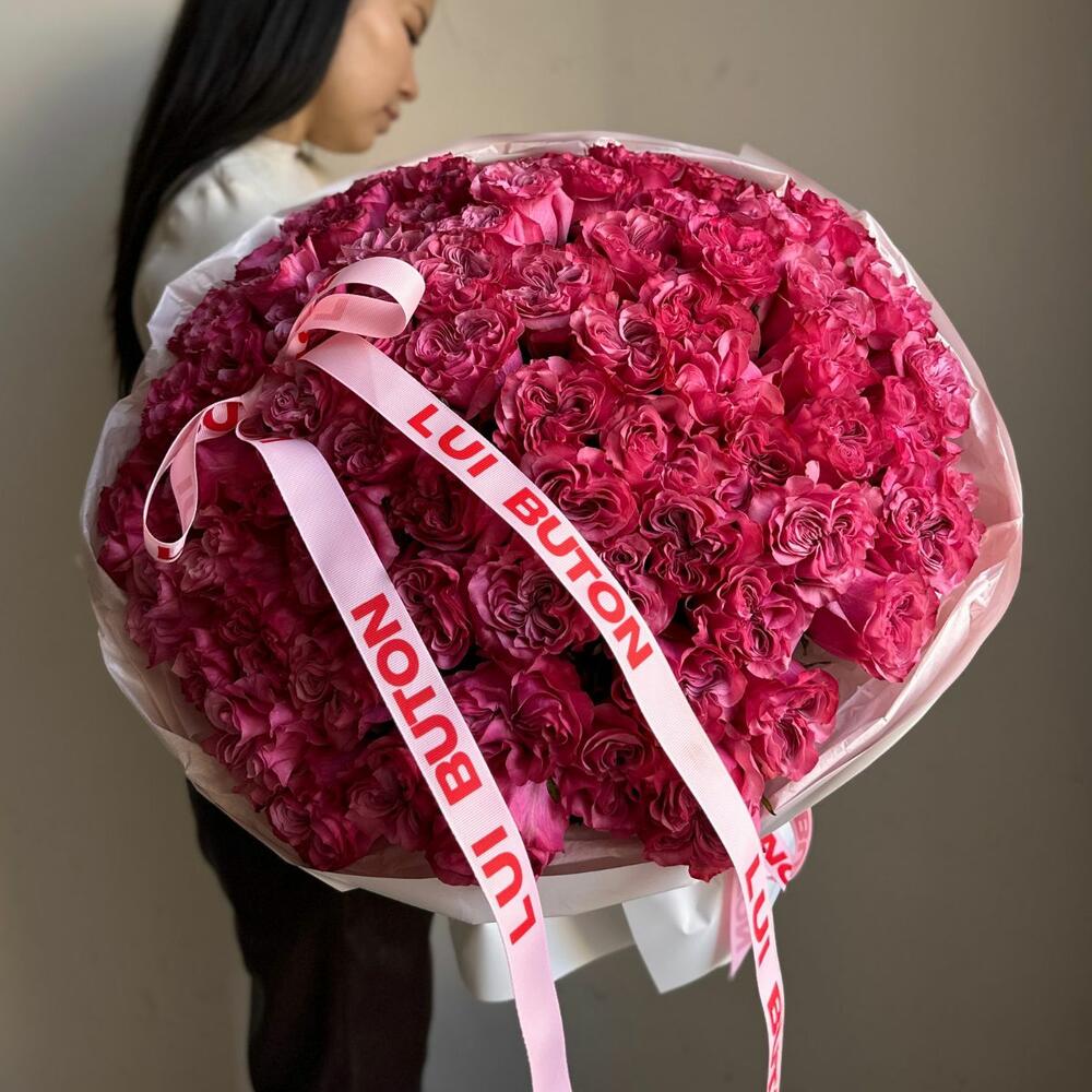 Элегантный букет из 81шт пионовидных роз сорта Country Blue покоряет мягким оттенком сирени и бархатистой формой бутонов. Идеальный выбор, чтобы выразить внимание, восхищение или любовь