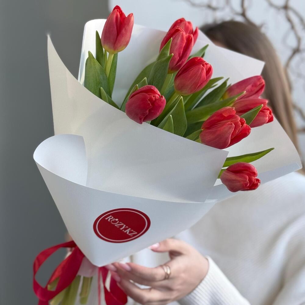 Букет 9 красных тюльпанов
