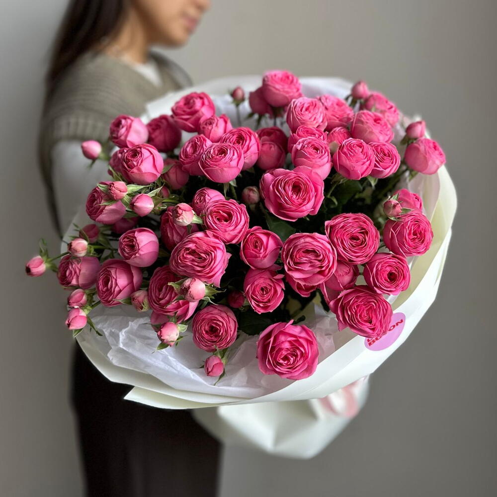 Букет с кустовыми розами выглядит особенно живо и трогательно. Небольшие бутоны создают объём и дарят ощущение лёгкости и уюта