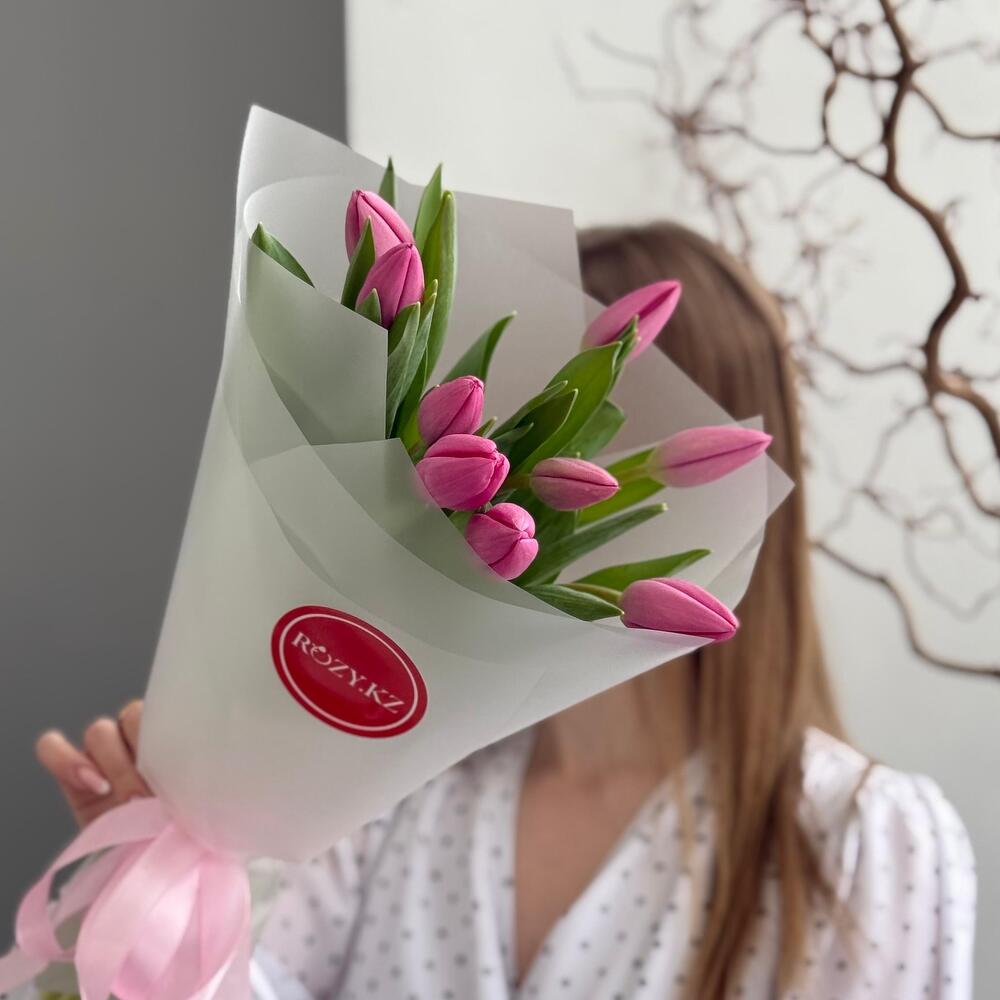 Букет 9 розовых тюльпанов