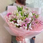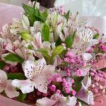 Альстромерия - 7 шт. Гипсофила - 3 шт. Лента атласная - 1 шт.