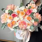Хризантема кустовая - 3 шт. Эвкалипт - 1 шт. Пионовидная роза - 2 шт. розы - 5 шт. спрей розы - 3 шт.