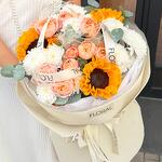Хризантема кустовая - 3 шт. Эвкалипт - 1 шт. Подсолнух - 3 шт. Сухоцветы - 3 шт. Спрей роза - 3 шт.