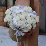 Изысканная композиция из хризантемы в плетенной корзинке кашпо