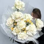 Отвратительный букет сделали, просто посмотрите на фото из карточки и реальное фото букета. Заказал жене на работу - ей стыдно было перед всеми, что такой ужасный букет привезли. Продавец написала, что роз этого оттенка нет в наличии, есть потемнее. Но со мной они не согласовали и просто отдали в доставку - а там розы вообще не пионовидные, какие то страшные, темные, как похоронные. Цветы друг с другом вообще не сочетаются, про упаковку вообще молчу. Никогда в жизни цветы из этого магазина заказывать не буду и никому вообще не советую, абсолютная некомпетентность.