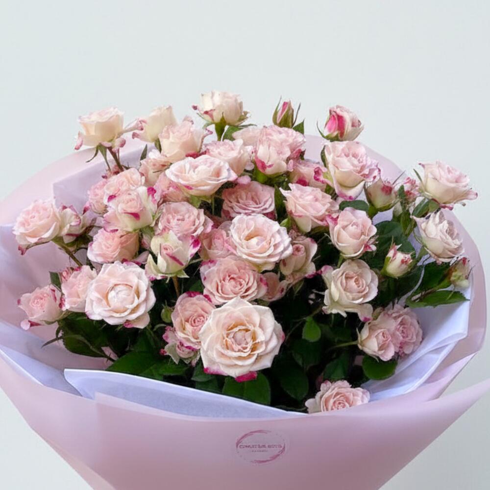 Этот великолепный монобукет из семи кустовых роз станет прекрасным подарком для любого праздника. Утонченная эстетика этих цветов создает неповторимую атмосферу очарования и нежности. Каждый бутон раскрывается словно небольшая удивительная вселенная, сотканная из тончайших лепестков, переливающихся оттенками страсти и любви. Розы сочетают в себе неповторимый аромат и изысканный внешний вид, что делает их незаменимым элементом в любой композиции.
