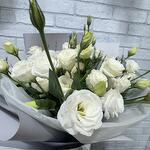 Лента - 1 шт. Эустома - 11 шт. Бумага - 4 шт. Калька упаковка - 3 шт.