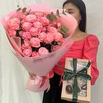 Букет из пионовидных роз Bombastic + королевские финики в бельгийском шоколаде украсят стол вашего получателя ☺️