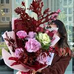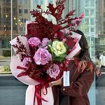 Роза Голландская - 5 шт. Брассика - 1 шт. Симфорикарпус - 1 шт. листья клена крашенные - 2 шт. листья бука стабилизированные - 1 шт.