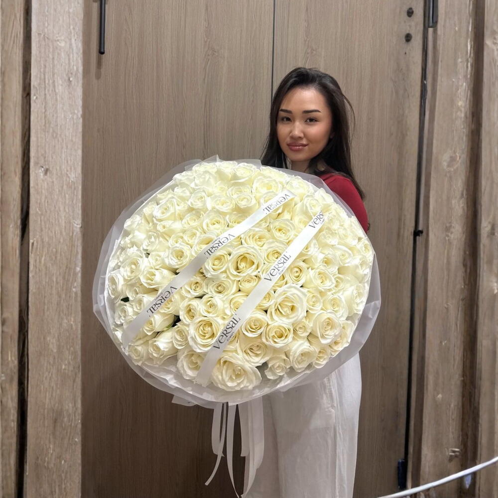 101 белая голландская роза — символ искренности и преданности. Элегантный и торжественный вариант.