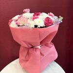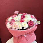 Маттиола - 1 шт. Хризантема кустовая - 4 шт. Гвоздика - 3 шт. Эустома - 2 шт. Роза пионовидная - 5 шт.
