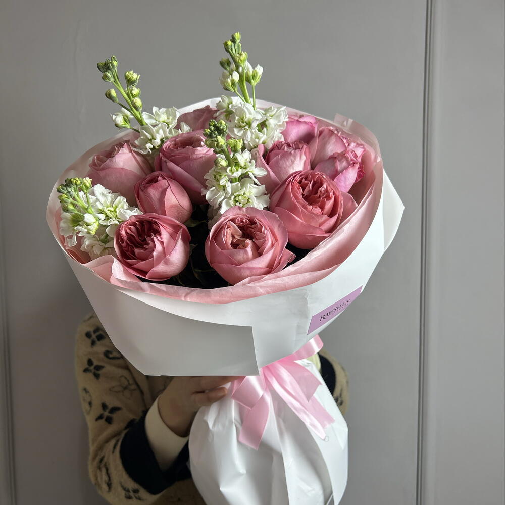 Маттиола - 4 шт. Роза - 11 шт.