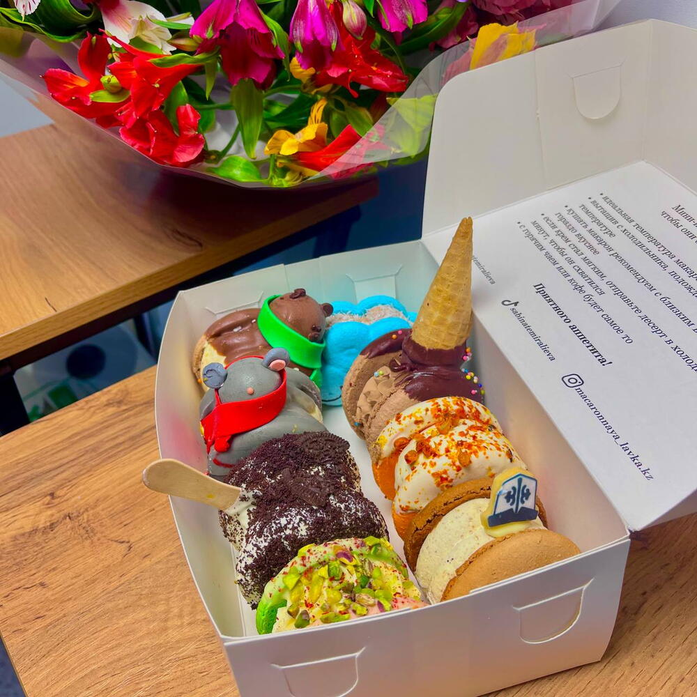 Заказывали у них в приложении флоувау комбо с цветами и макаронсами,цветочки очень свежие.Остлись очень довольны