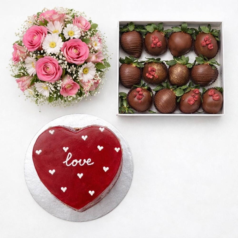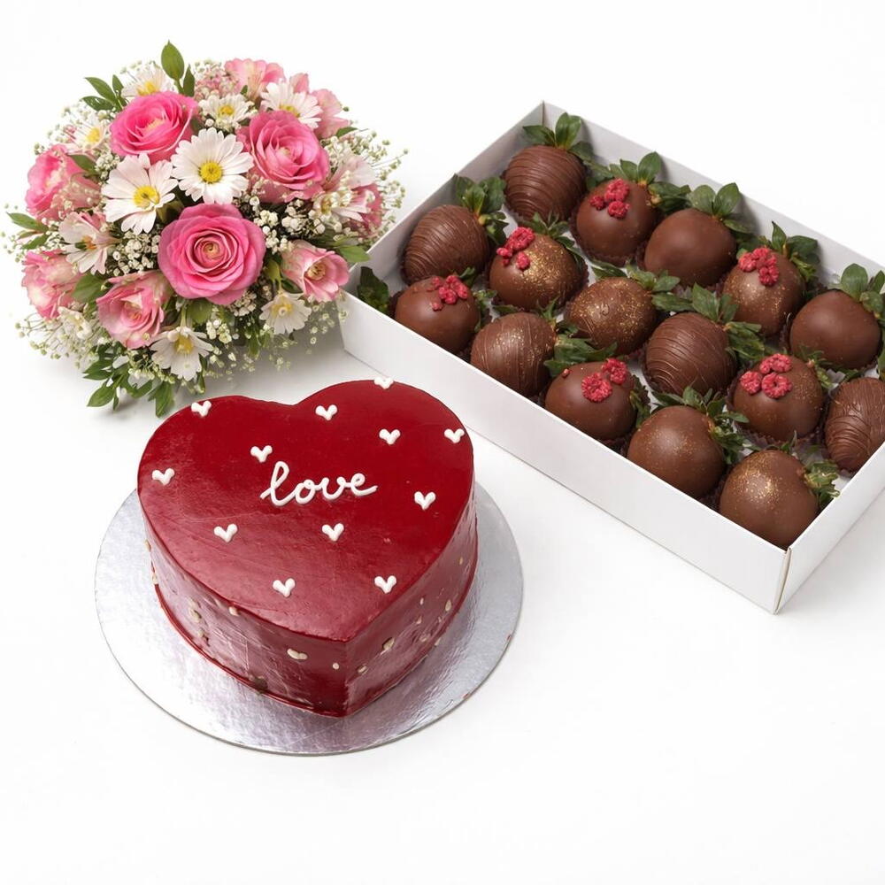 Клубника в шоколаде - 16 шт. букет - 1 шт. бенто торт - 1 шт.