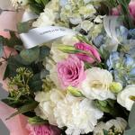 Гортензия - 4 шт. Лизиантус - 9 шт. Эвкалипт - 3 шт. Гвоздика - 7 шт. вибурн - 5 шт.