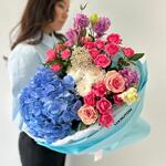 Гортензия - 1 шт. Озотамнус - 1 шт. Хризантема - 1 шт. розы - 3 шт. кустовые розы - 3 шт. эустомы - 2 шт.