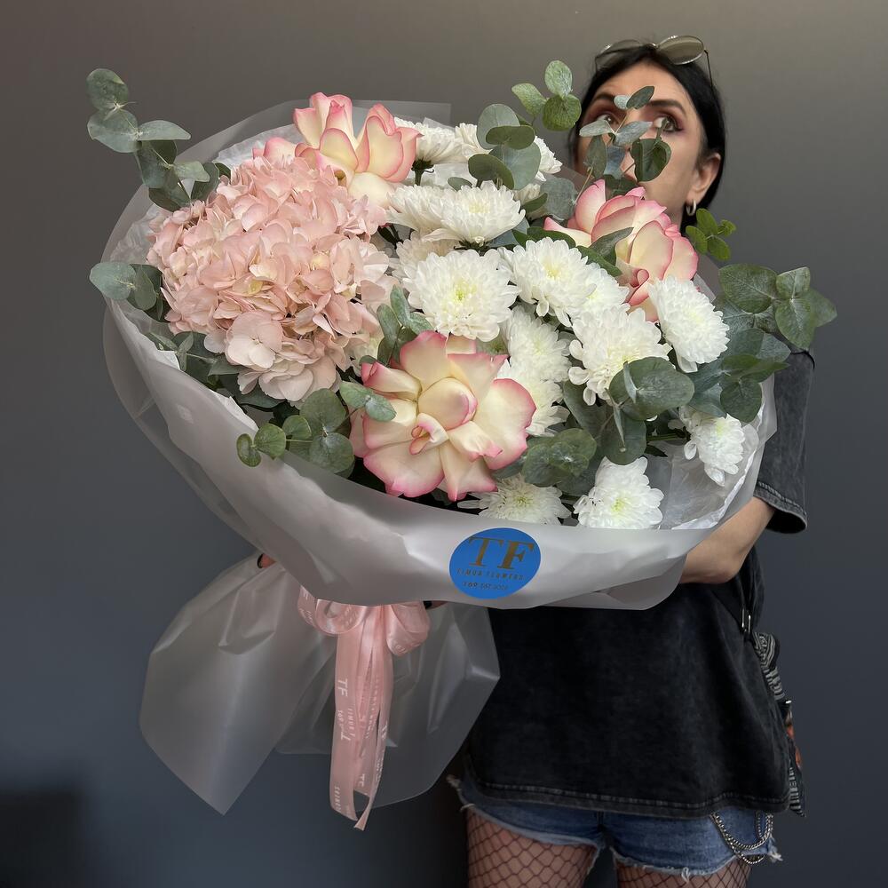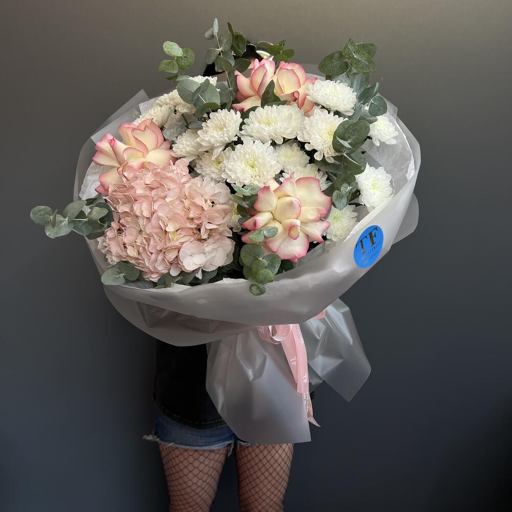 Букет «Джульетта» Гортензия, Французские розы, Хризантема