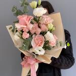 Эвкалипт - 1 шт. Эустома - 3 шт. Спрей роза - 1 шт. французские розы - 3 шт.