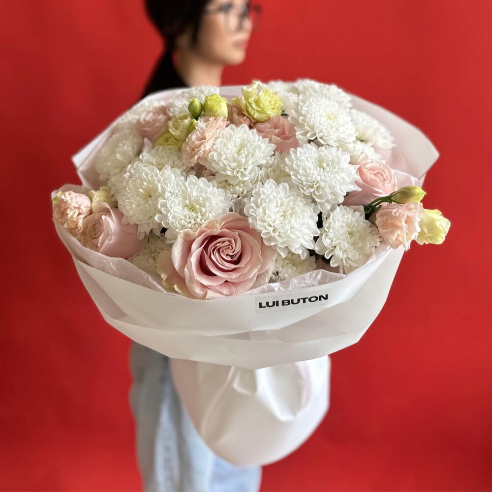 хризантемы - 3 шт. розы - 5 шт. эустомы - 3 шт.