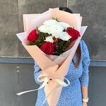 Хризантема кустовая - 1 шт. декоративная зелень - 4 шт. роза микс - 3 шт.