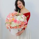 Гортензия - 5 шт. Маттиола - 5 шт. Роза - 13 шт. Гвоздика - 5 шт. Коробка - 1 шт.