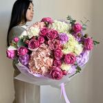 Эвкалипт - 2 шт. Диантус - 5 шт. Пионовидная роза - 1 шт. гортензии - 5 шт. пионовидные кустовые розы - 7 шт.