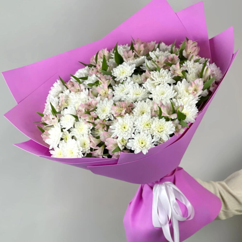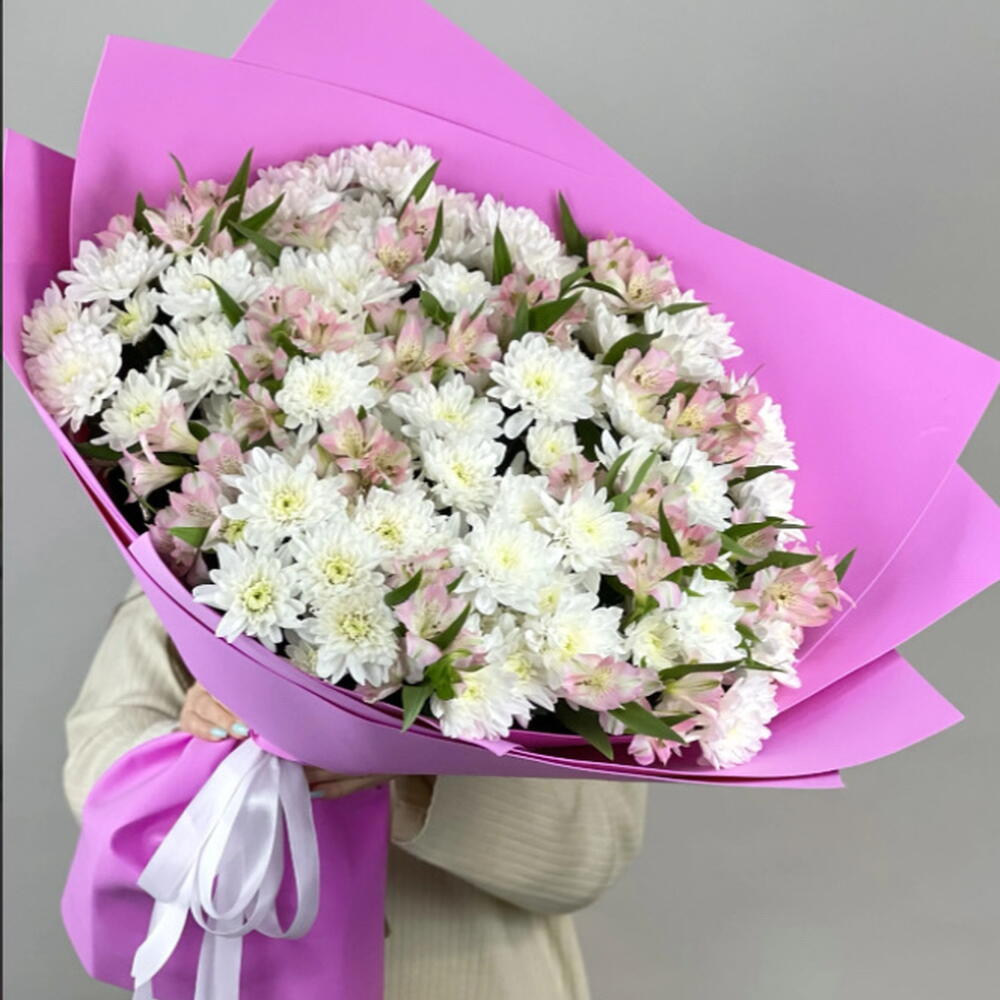 Зелень - 4 шт. Хризантема кустовая mix - 19 шт. альстромерия mix - 20 шт.