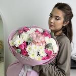 Гортензия - 1 шт. Роза кустовая - 5 шт. Хризантема кустовая - 5 шт. Эвкалипт - 1 шт.