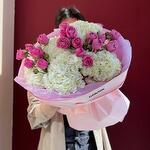 гортензии - 5 шт. кустовые пионовидные розы - 6 шт.