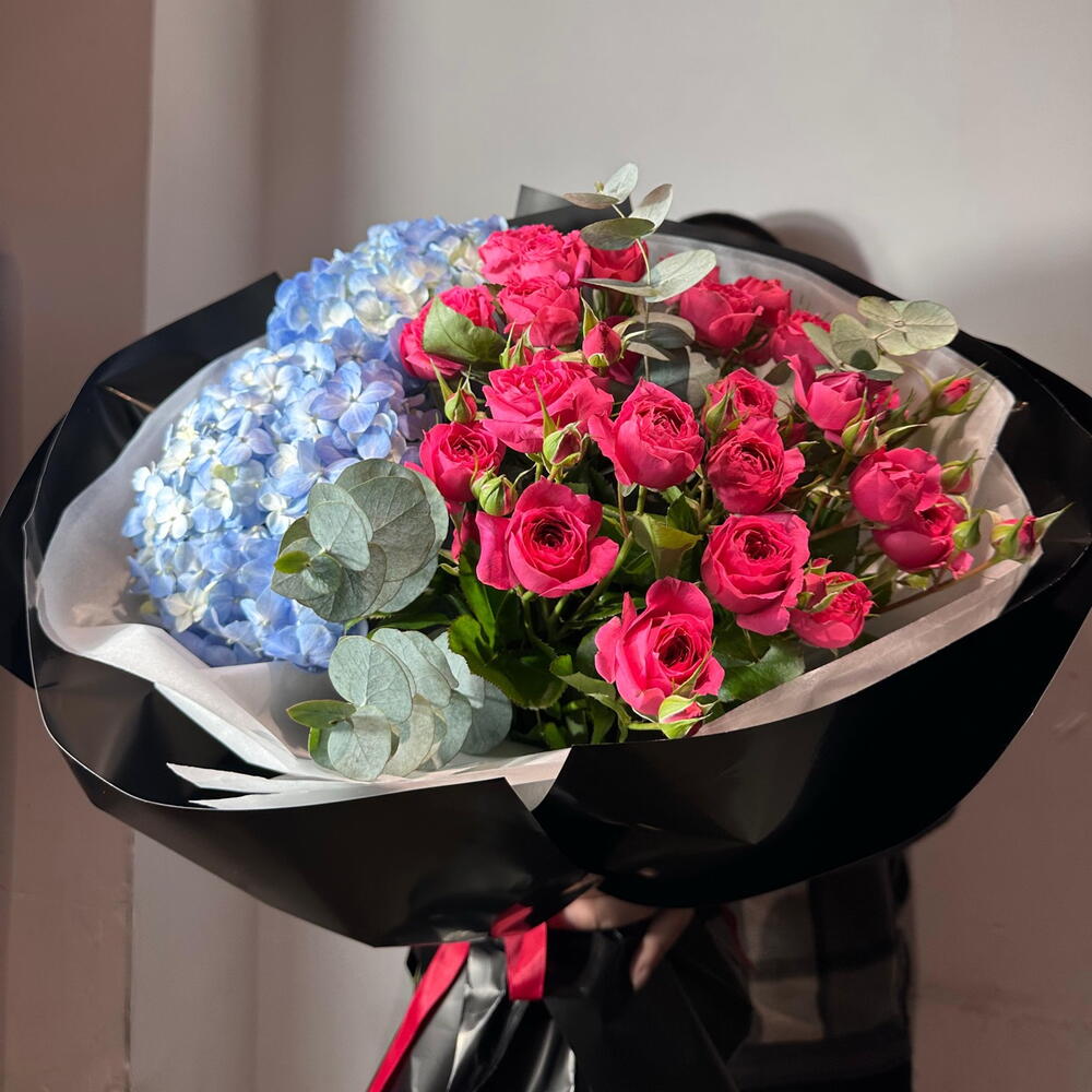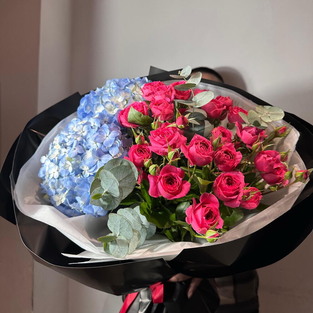 Кустовая роза - 3 шт. Эвкалипт Цинерея - 3 шт. гортензия премиум - 2 шт.