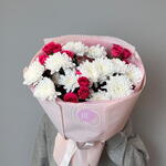Хризантема кустовая - 3 шт. Кустовая роза - 3 шт. Оформление - 1 шт.