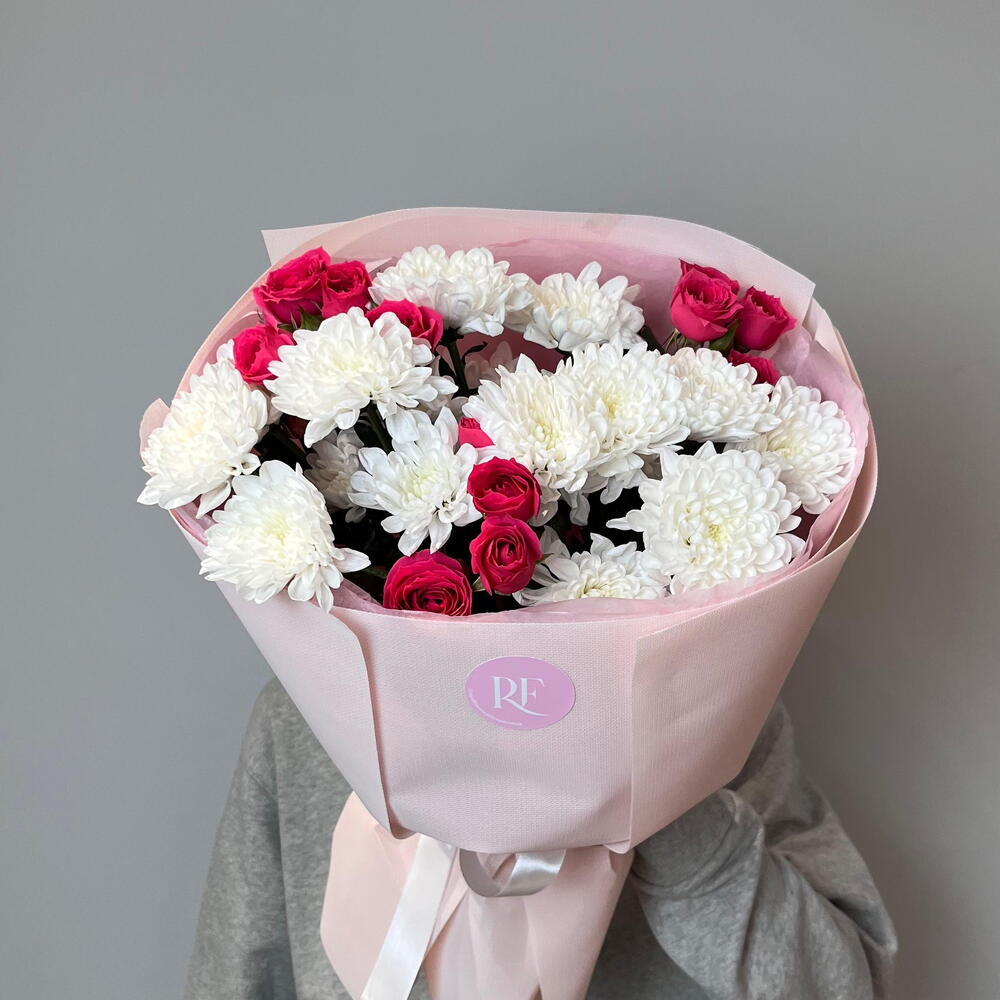 Букет хризантем с кустовой розой