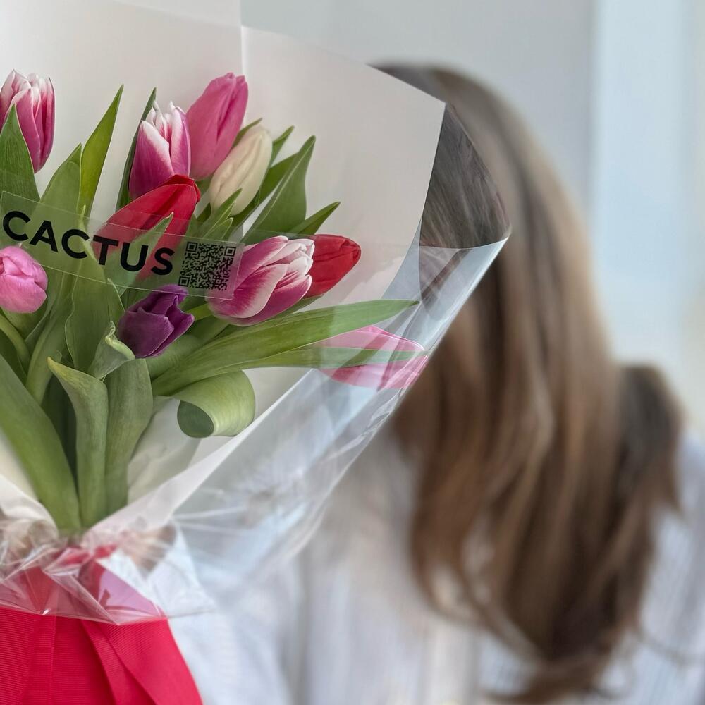 Букет «ХРУСТЯЩИЕ ТЮЛЬПАНЫ» (микс из тюльпанов 11шт в фирменной упаковке)
