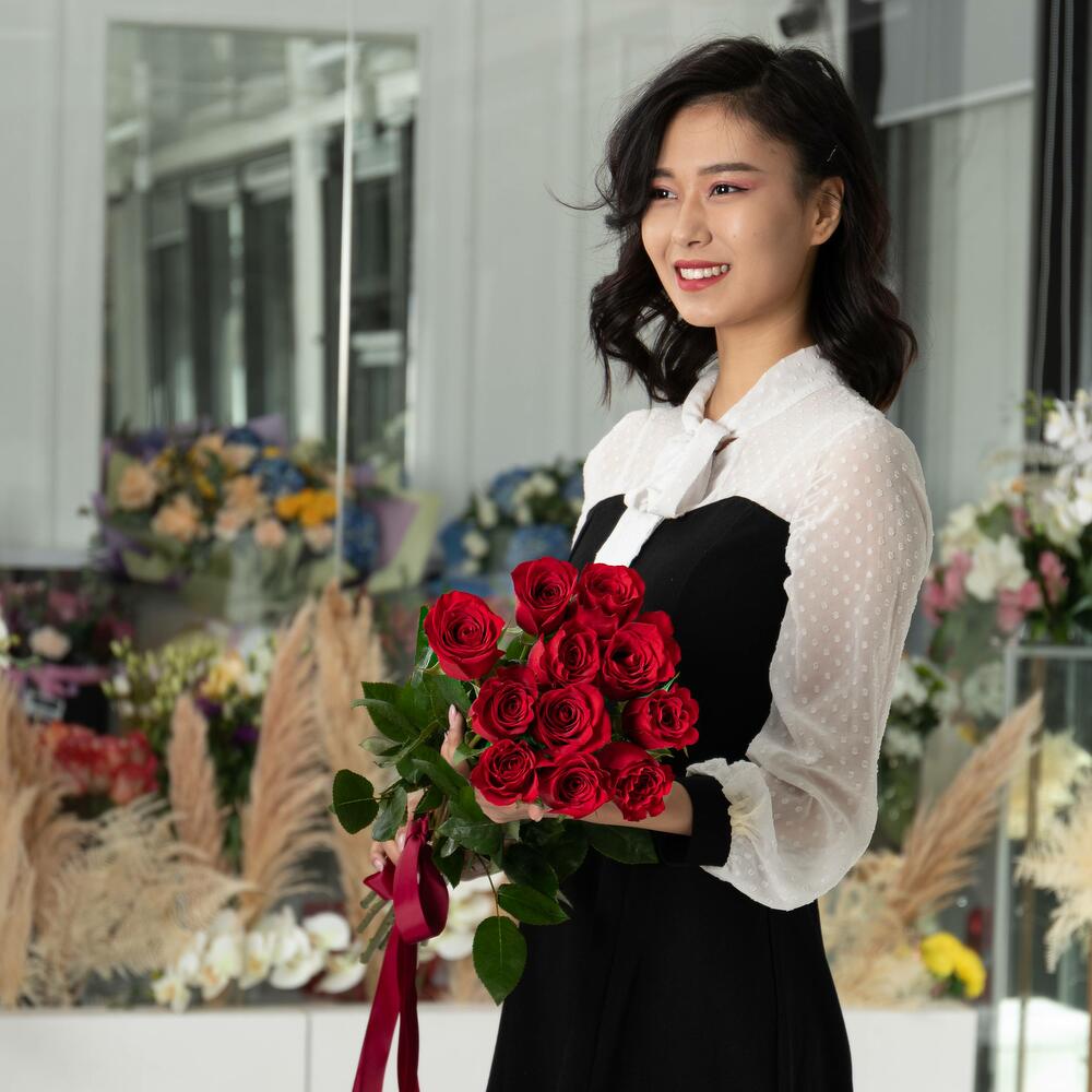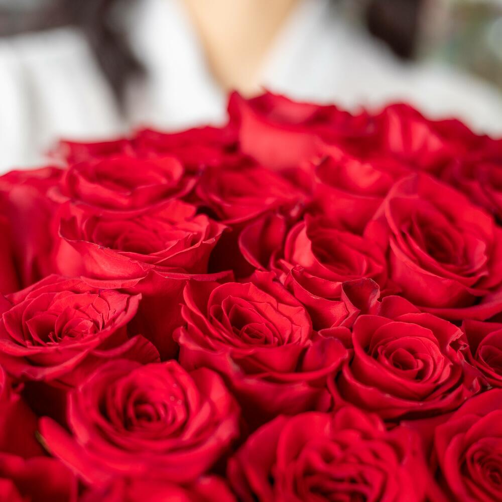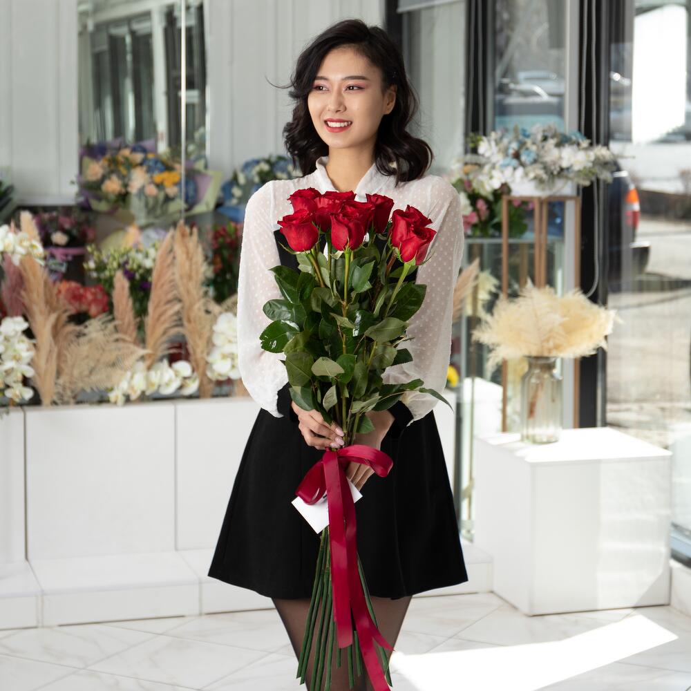 Букет из красных роз, 11 штук, высотой 100 см. Этот букет не оставит равнодушной даже самую привередливую барышню.