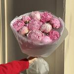 Аквабокс - 1 шт. Авторская упаковка - 1 шт. пионы - 11 шт. витамины для цветов - 1 шт. открытка бесплатная на выбор - 1 шт.