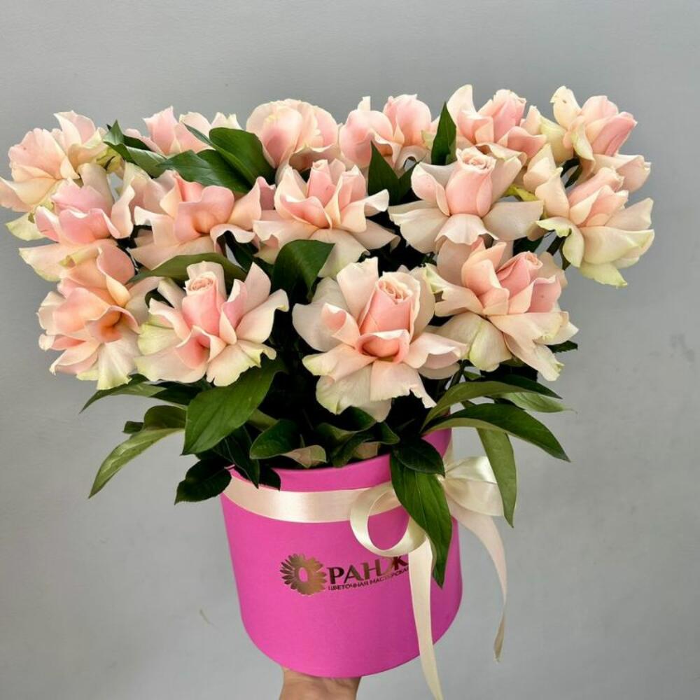 Букет из 15 голландских роз с зеленью в коробке от Оранж Алматы