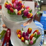 Прекрасный букет из 15 микстюльпанов, оформленных в бумагу. Замечательный подарок на 8 марта!