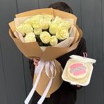 Стильный букет и бенто торт с любой надписью В комплекте с тортиком идет свечка, ложка, крафтовый пакет