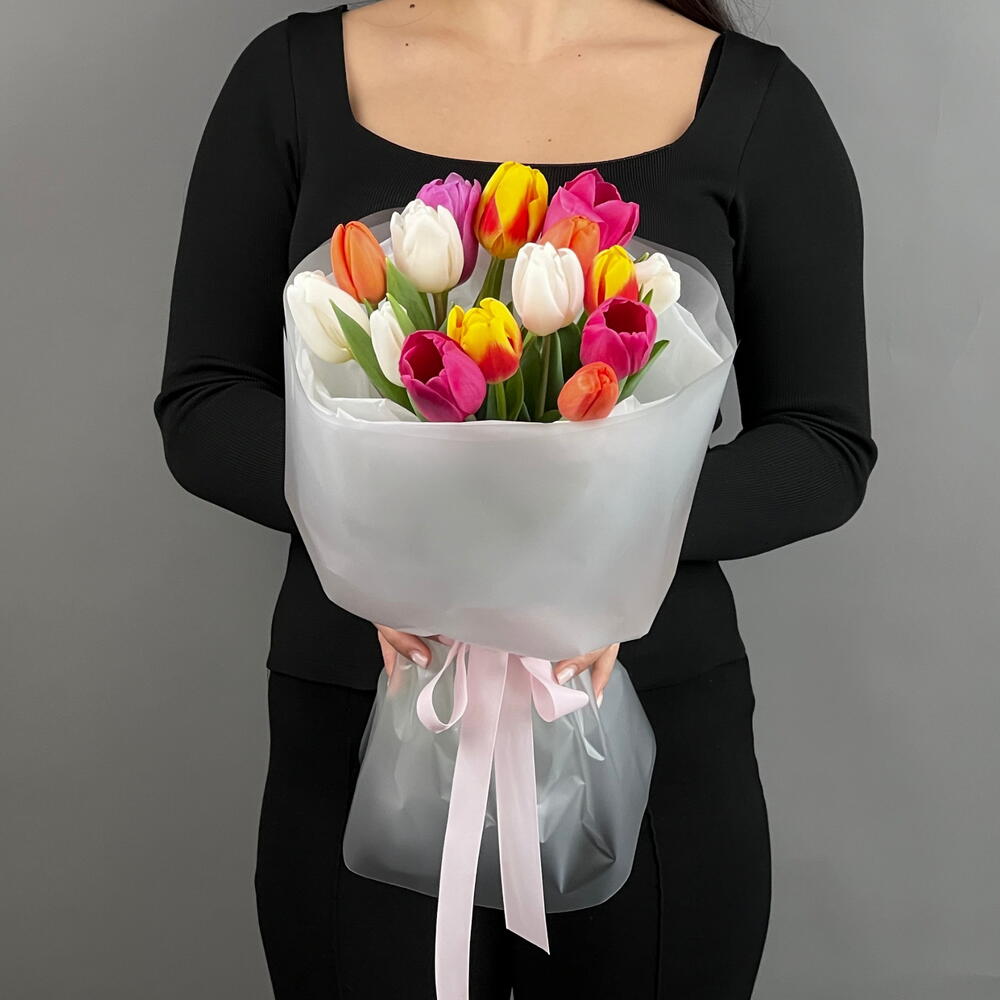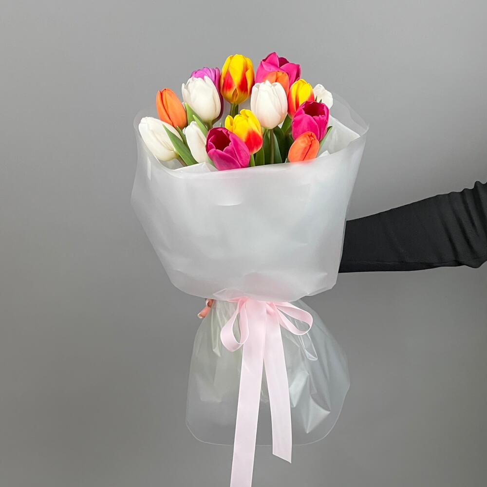 Тюльпаны выглядят одновременно нежно и элегантно, поэтому они всегда остаются одним из самых любимых и универсальных цветов. Букет оформляется в стильную упаковку, которая подчёркивает естественную красоту цветов и делает композицию ещё более эффектной. Свежие тюльпаны долго сохраняют свою красоту и наполняют пространство весенним настроением.